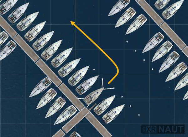 Hier gilt es die Box sicher zu verlassen und in Richtung Hafenausfahrt zu navigieren. Dies wird in der Regel nur mit Leinenunterstützung gelingen.
