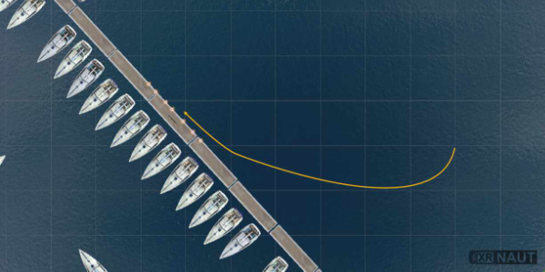 Irgendwo in der Nähe vom Schild zu halten ist nur die erste Übung. Wenn das gelingt, ist die Herausforderung exakt vor dem Schild anzulegen. Wenn es später einmal eng wird, sind 5 Meter entscheidend. Auch wichtig: Das Schiff in den Stillstand stoppen und keineswegs am Steg entlangschleifen - auch wenn der Steg hier recht gut gepolstert ist.
