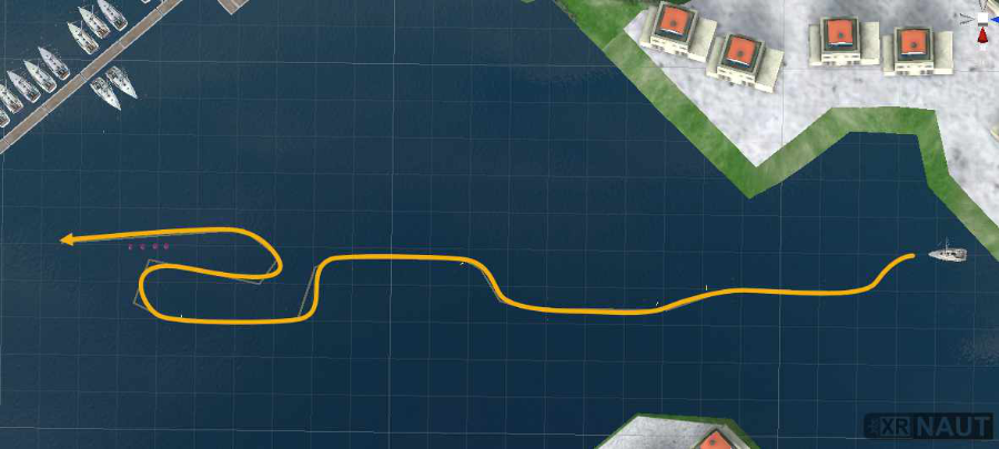 Pass all waypoints (between the buoys) and reach the end with your ship intact (health > 0).